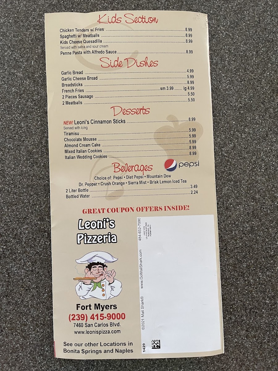 Leoni's Pizzeria - Fort Myers Menu